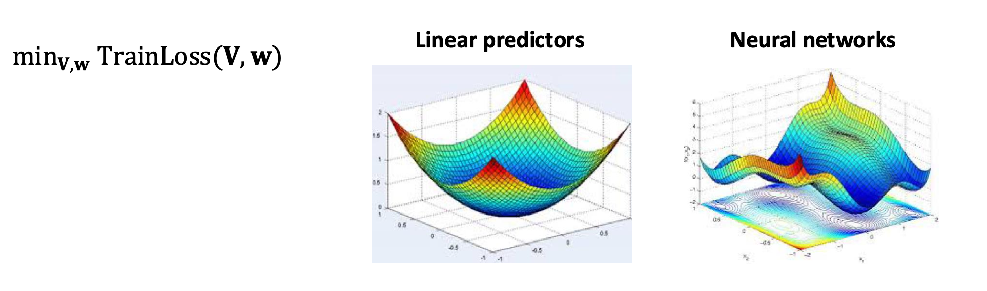 - 그 결과, 여러 개의 지역 최적해나 안장점(saddle points)이 자연스럽게 나타난다.