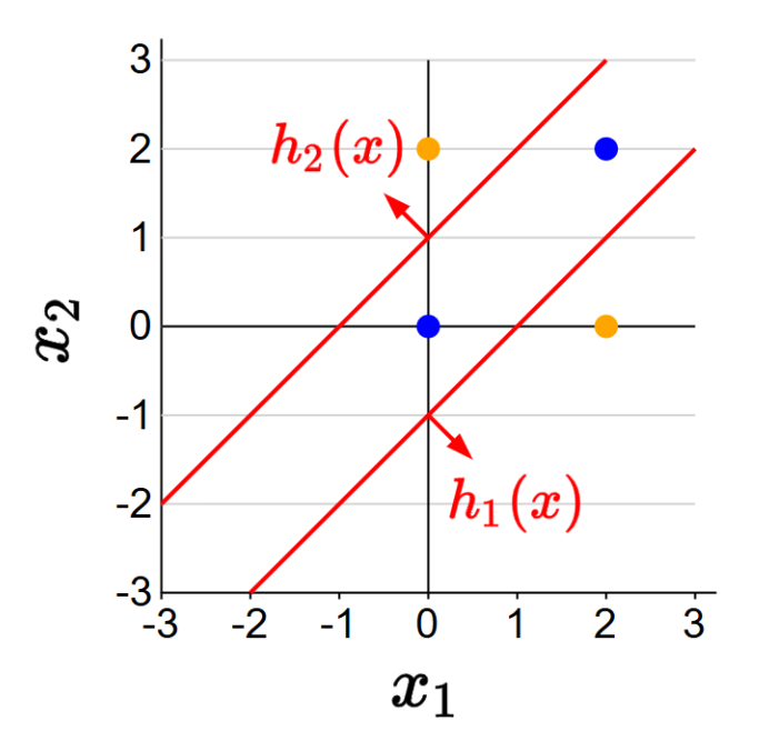 입력이 $(x_1, x_2)$일 때 결정 함수는