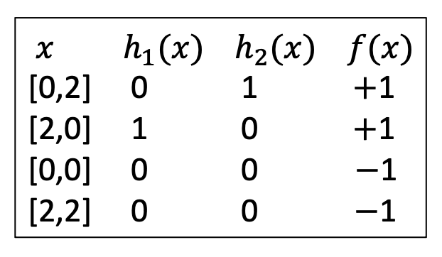 \[f(x) = [2, 2, -1] \cdot \varphi(x) = 2z_1 + 2z_2 - z_3\]로 표현된다.