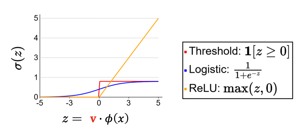 - 선형 모델의 경우, 가설 클래스는 특성 추출기(feature extractor) $\varphi(x)$의 선택에 의해 결정된다.