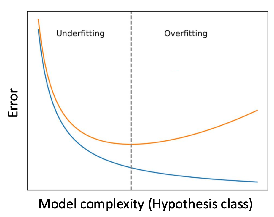 - 가로축: 모델 복잡도(가설 클래스)