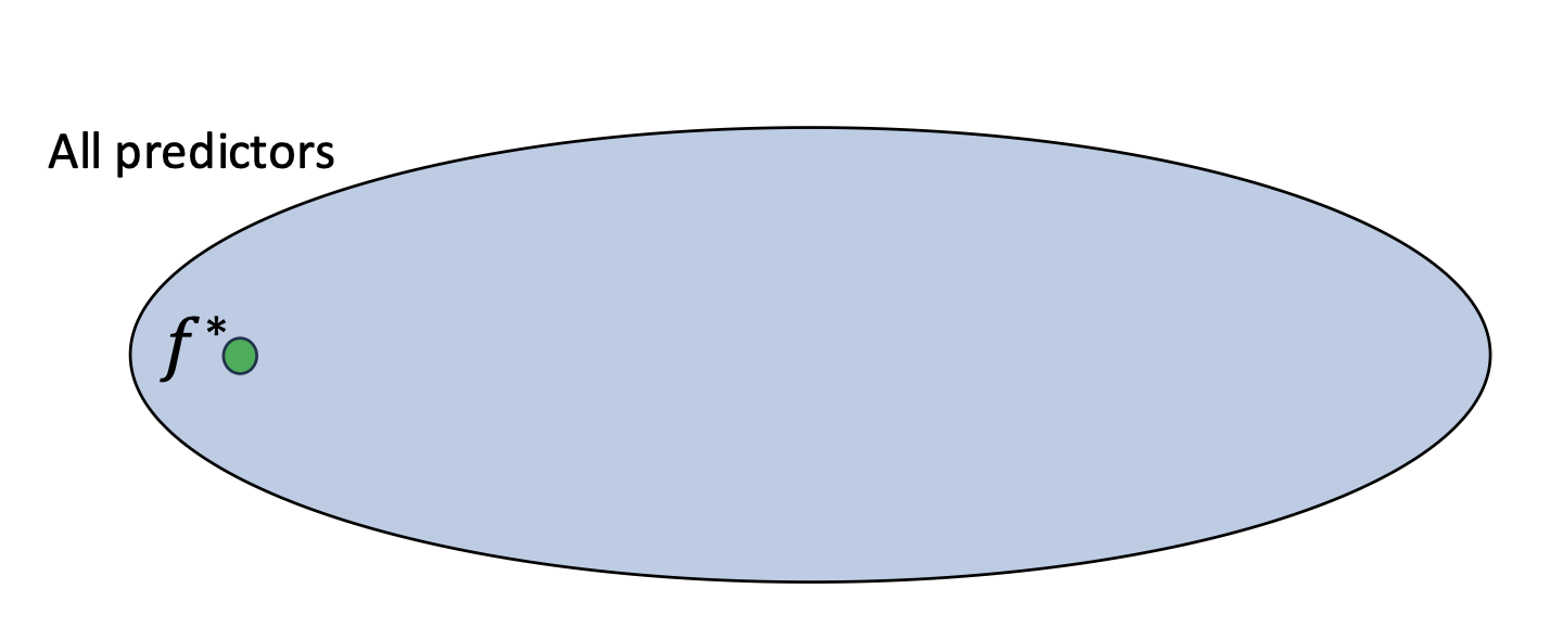 - 그 안에는 완벽하게 예측하는 최적 예측기(optimal predictor) $f^*$ 가 존재한다.