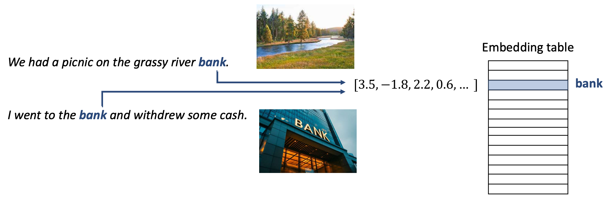 - 그러나 두 단어 모두 임베딩 테이블에서 동일한 벡터로 매핑된다.