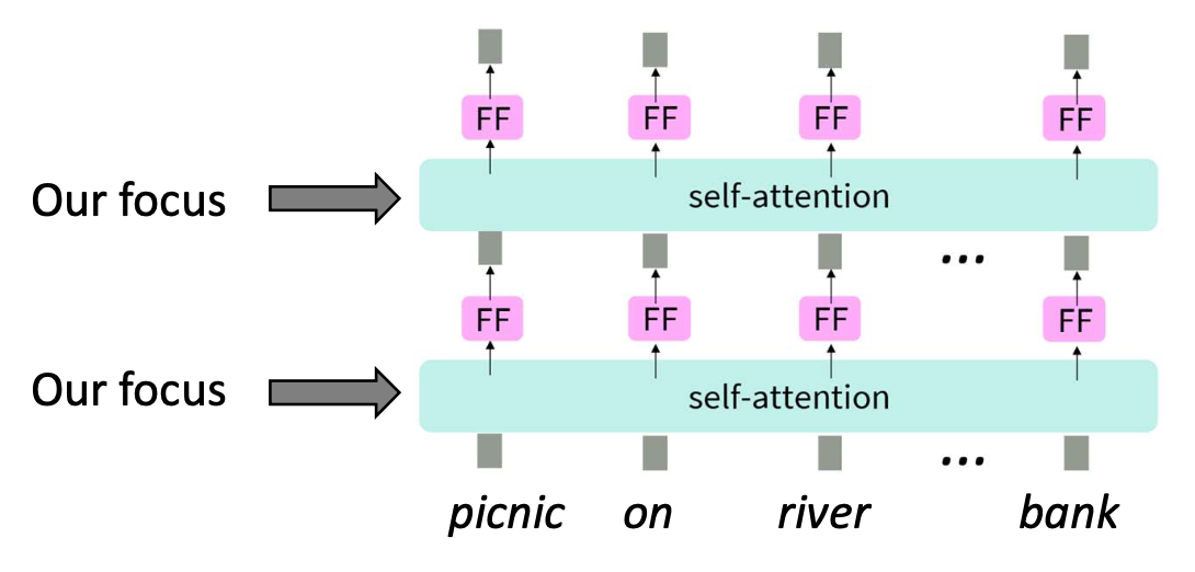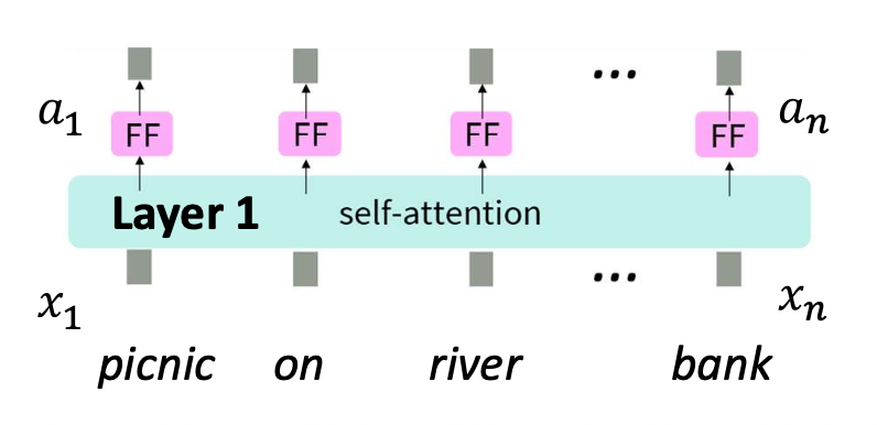 하나의 셀프-어텐션 층은 문맥(context)을 포착하지만,