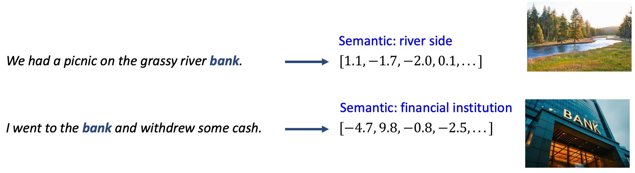 → 올바른 의미는 가장 가까운 벡터로 결정된다.