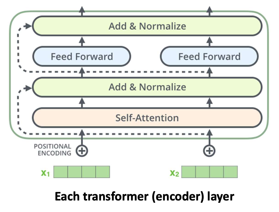 - 트랜스포머 인코더(Transformer Encoder)에 사용된다.
