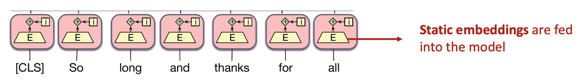 - 단어 벡터는 주변 문맥(context) 에 따라 동적으로 조정(dynamically adjusted) 된다.