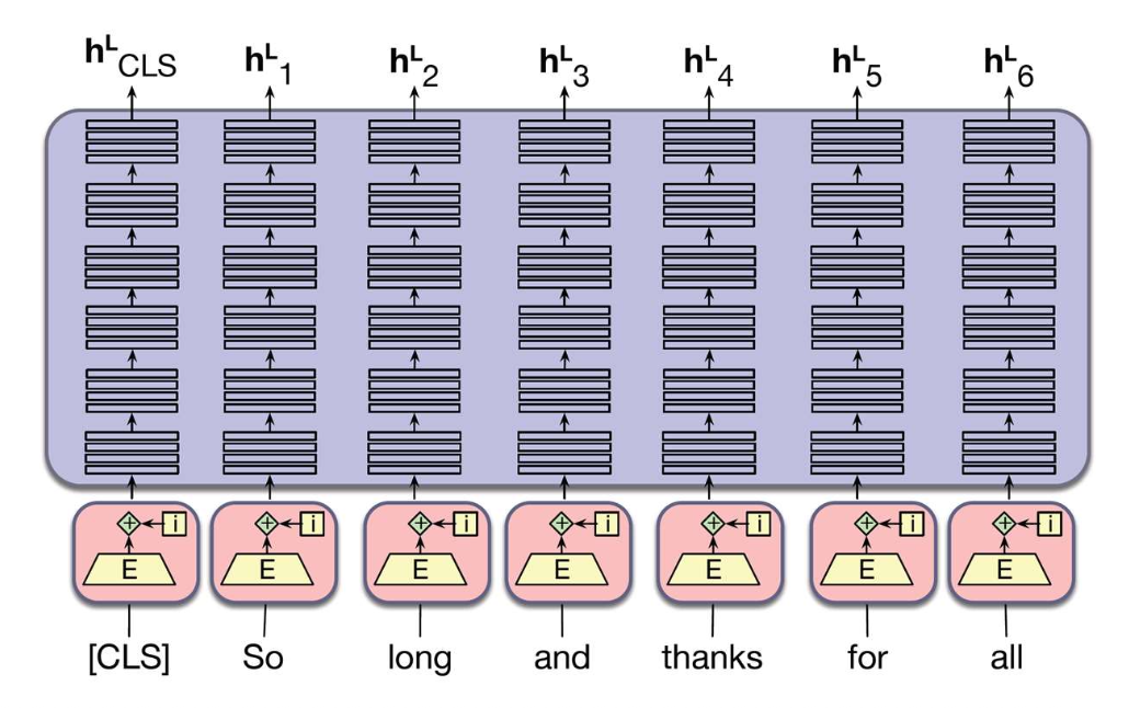 그 사이를 특수 토큰 [SEP] 으로 구분한다. - 입력의 맨 앞에는 전체 입력 정보를 요약하기 위한