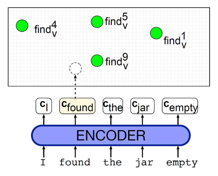(예: ‘find’라는 단어가 문맥에 따라 여러 의미 벡터로 표현됨)