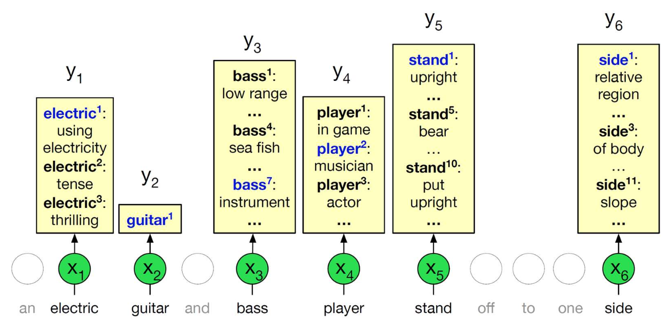 - 하나의 단어는 여러 가지 가능한 의미를 가질 수 있으며,