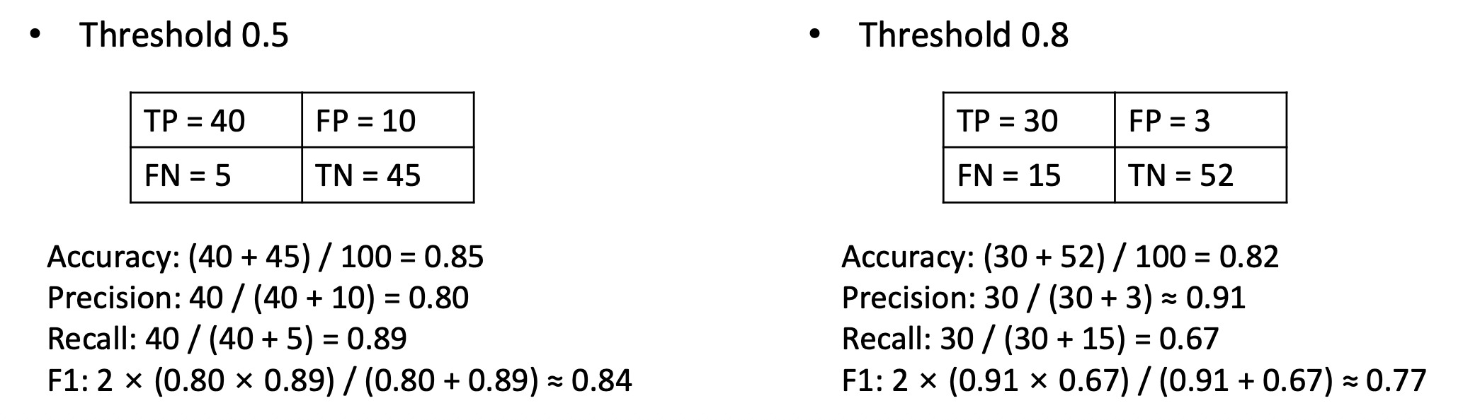 F1 = 2 × (0.86 × 0.80) / (0.86 + 0.80) ≈ 0.827
