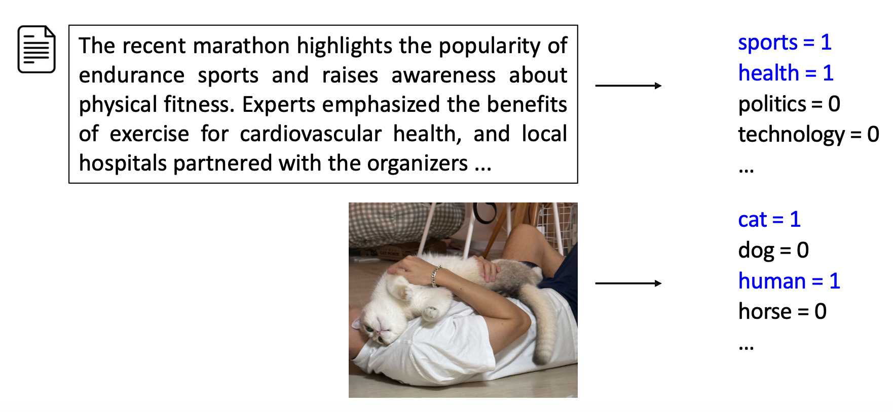 - 많은 실제(real-world) 사례에서, 각 인스턴스는 동시에 여러 클래스(multiple classes)에 속할 수 있다.