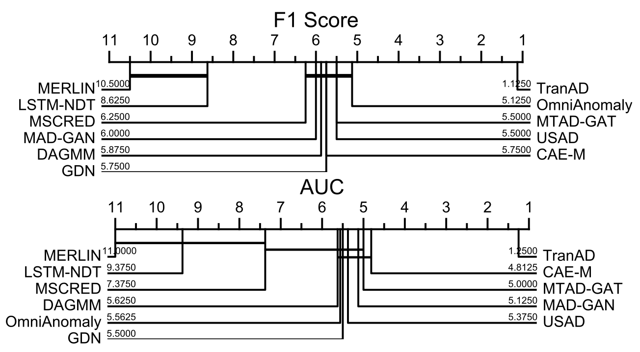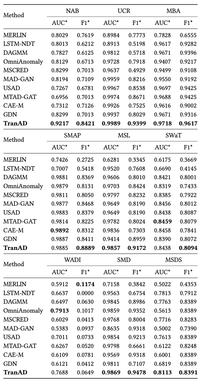 구체적으로 TranAD는 베이스라인 대비 F1 점수를 최대 17%까지 향상시키고,
